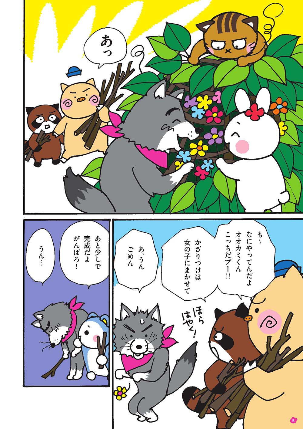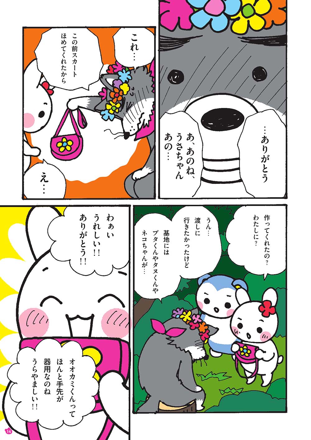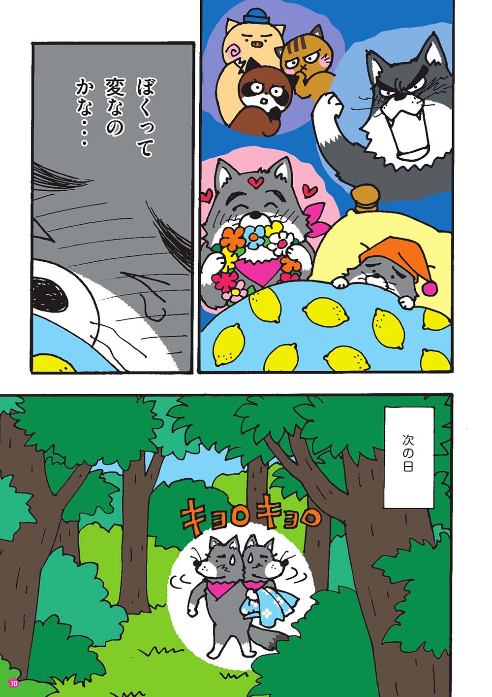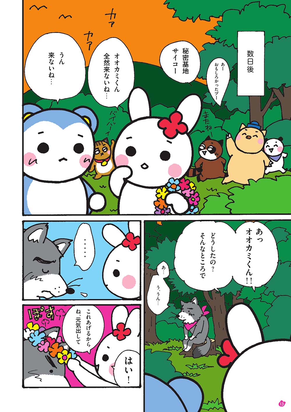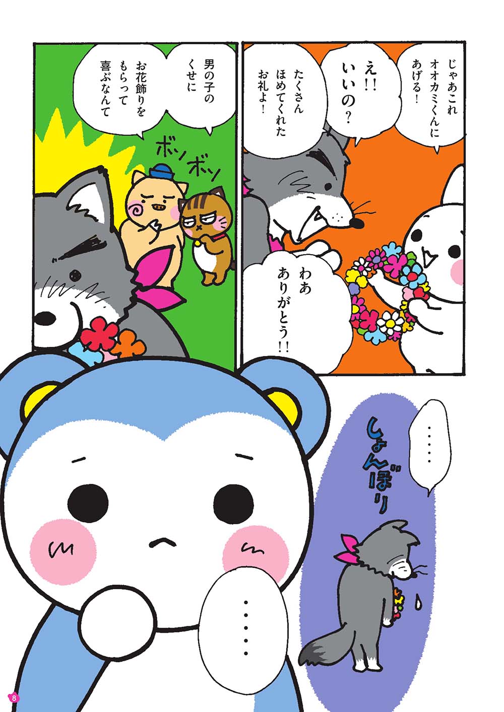仲良くなったある日、「自分の体が自分じゃないみたい」と、オオカミくんは悩みを打ち明け、「女の子たちとお人形遊びがしたい」「『わたし』っていいたい」と、モモマルくんとウサちゃんを前に泣き出しました。